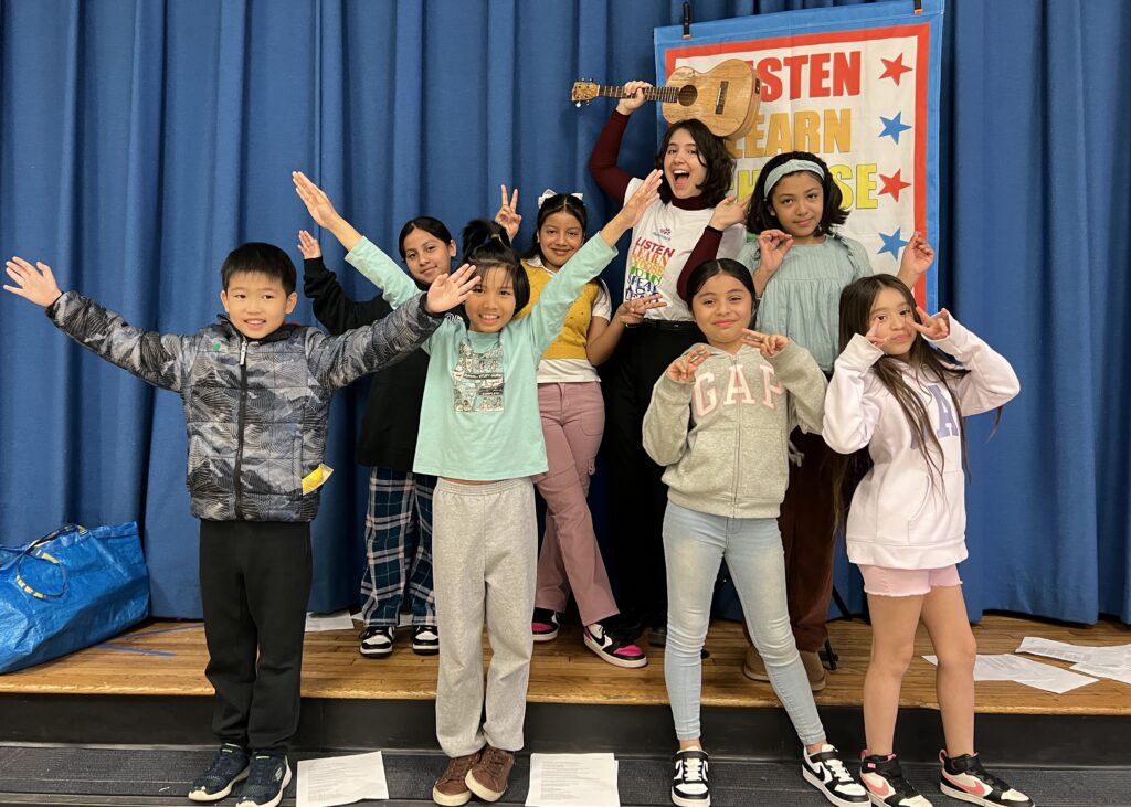 The Civic Circle also sets itself apart by using the performing arts to bring democracy alive for kids. In our after-school programs, students write their own democracy songs and hear from their civically active older peers. Our educational videos and performances showcase original songs about the Constitution, voting and public service, and lift up youth voices.